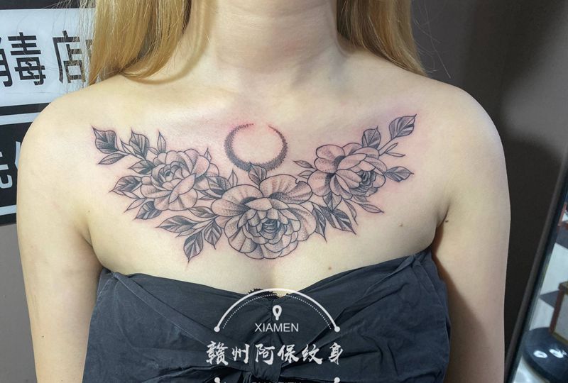 • 女性大花胸纹身_43张霸气漂亮的女性大花胸纹身图案作品