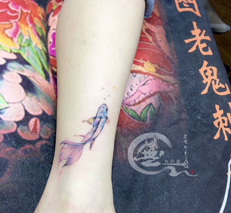 当前位置: 首页 >江西省九江市纹身店-無相纹图老鬼刺青纹身图案>水彩鱼纹身图片_脚部纹身图案