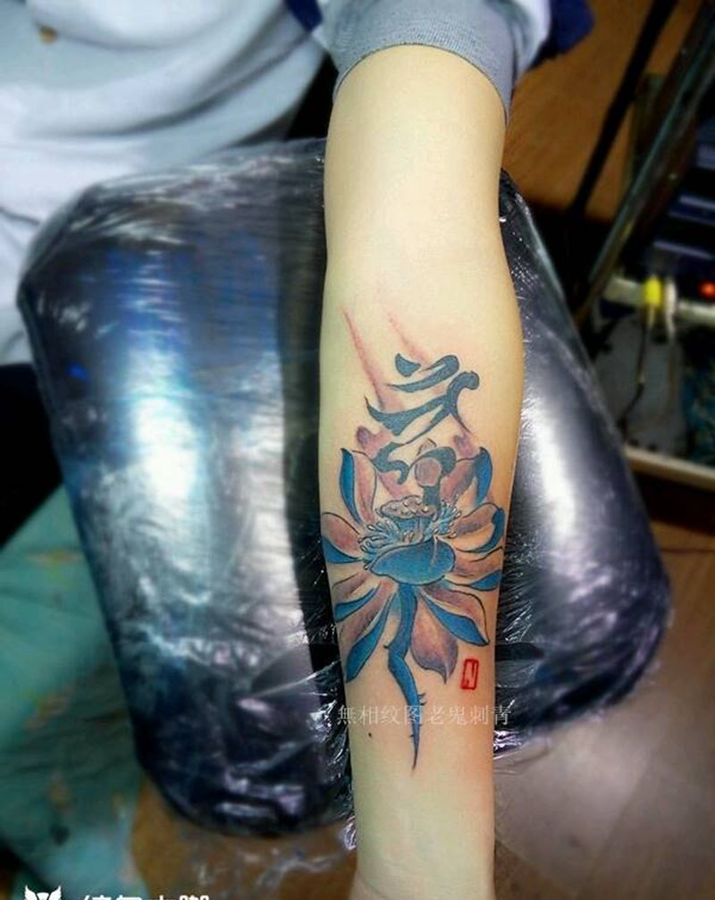 当前位置: 首页 >江西省九江市纹身店-無相纹图老鬼刺青纹身图案>莲纹身图片_手臂传统花卉成品纹身图案