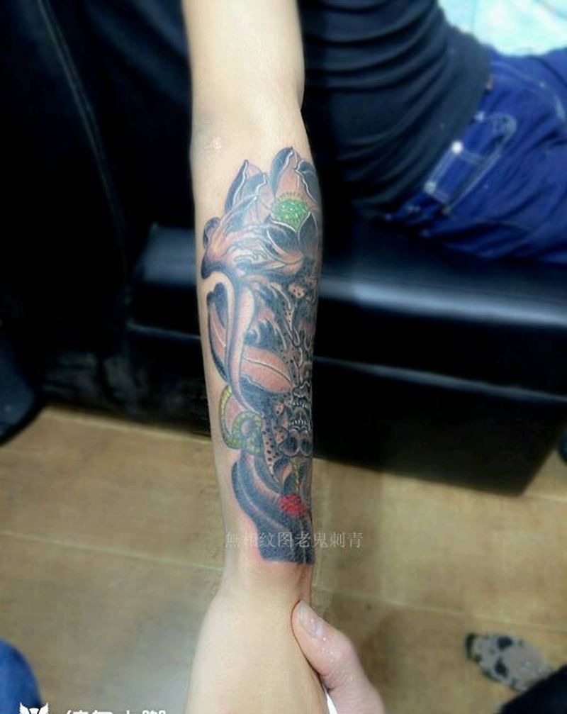 当前位置: 首页 >江西省九江市纹身店-無相纹图老鬼刺青纹身图案>修改添加纹身图片_手臂传统成品纹身图案