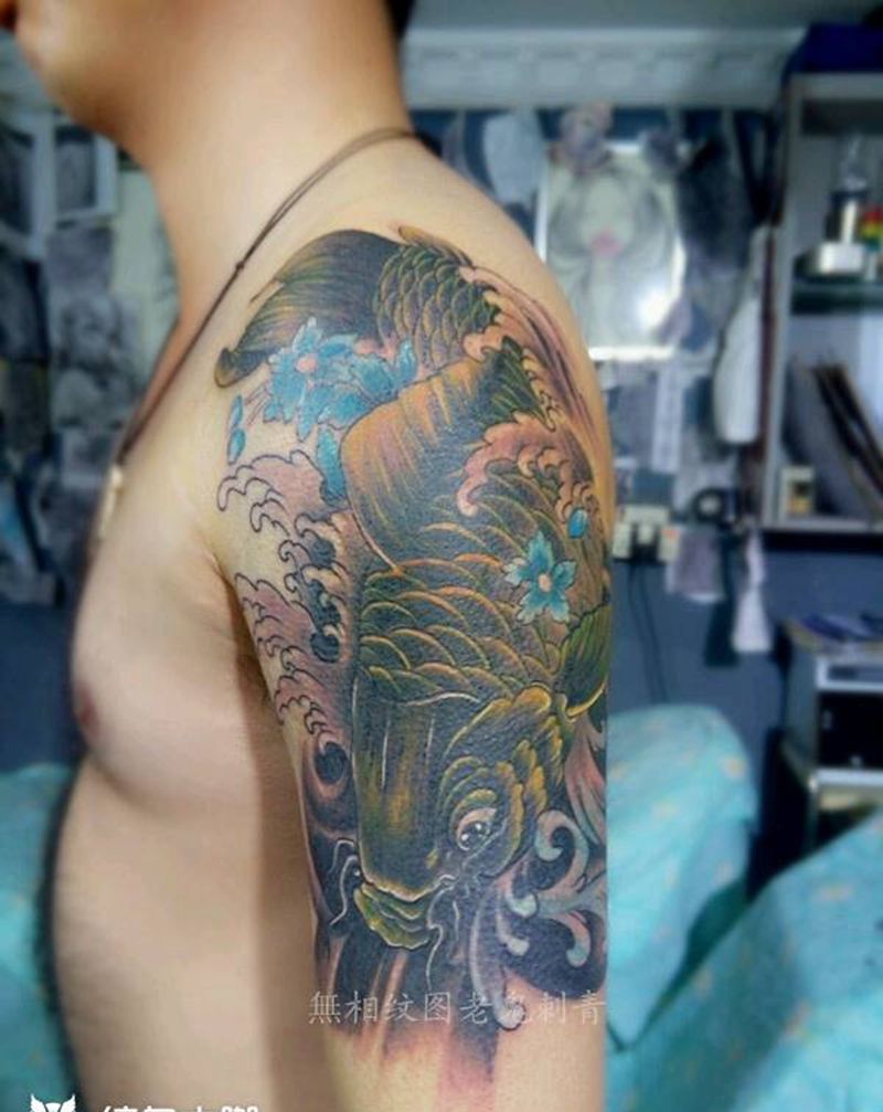 当前位置: 首页 >江西省九江市纹身店-無相纹图老鬼刺青纹身图案>鲤鱼纹身图片_手臂传统成品纹身图案