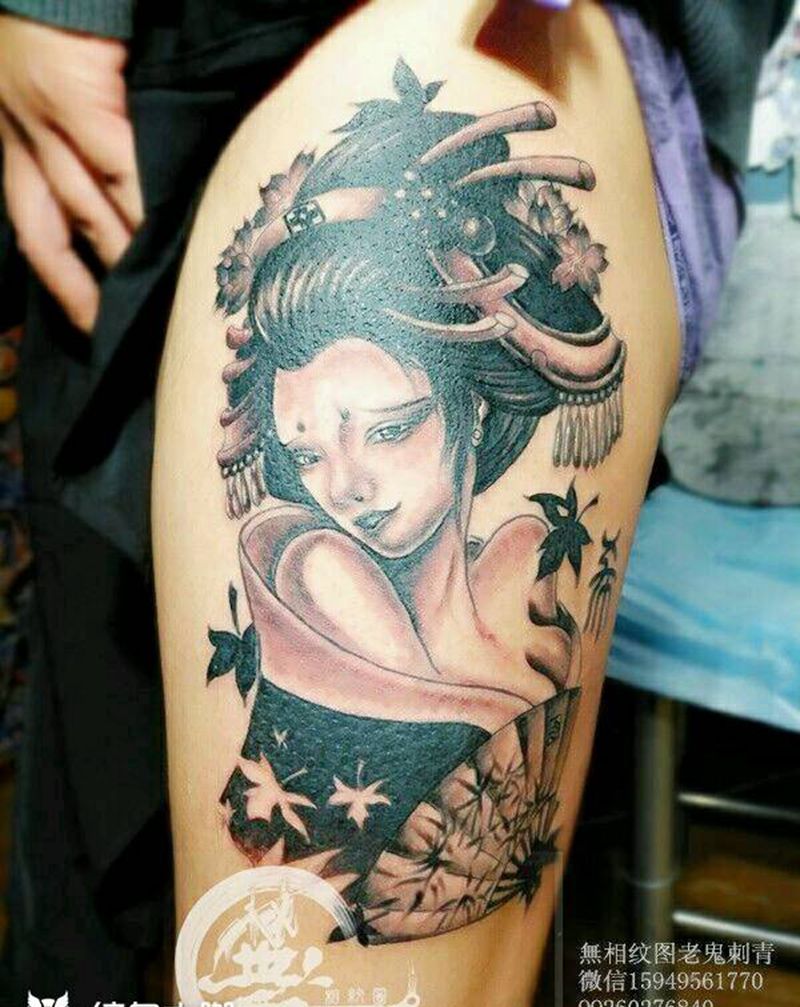 当前位置: 首页 >江西省九江市纹身店-無相纹图老鬼刺青纹身图案>艺妓纹身图片_传统成品纹身图案
