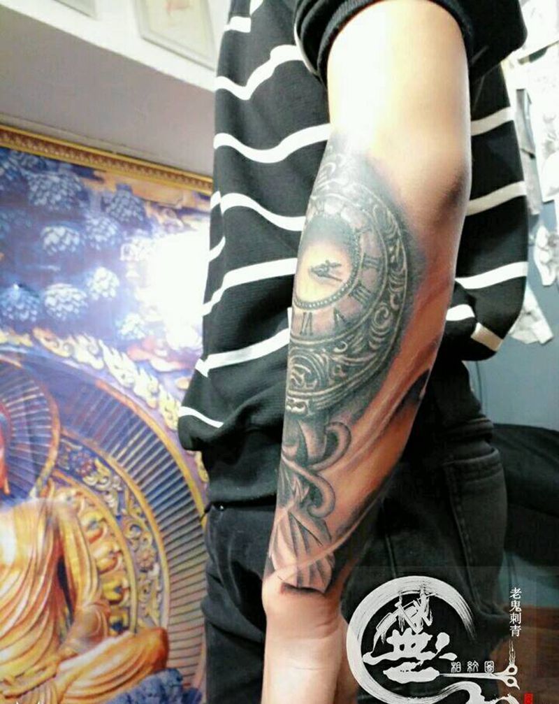 当前位置: 首页 >江西省九江市纹身店-無相纹图老鬼刺青纹身图案>欧美风格纹身图片_手臂欧美成品纹身图案