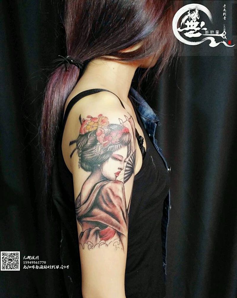 当前位置: 首页 >江西省九江市纹身店-無相纹图老鬼刺青纹身图案>艺妓纹身图片_手臂鬼神成品纹身图案