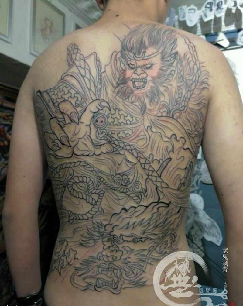 当前位置: 首页 >江西省九江市纹身店-無相纹图老鬼刺青纹身图案>斗战胜佛满背线条纹身图片_背部传统成品纹身图案