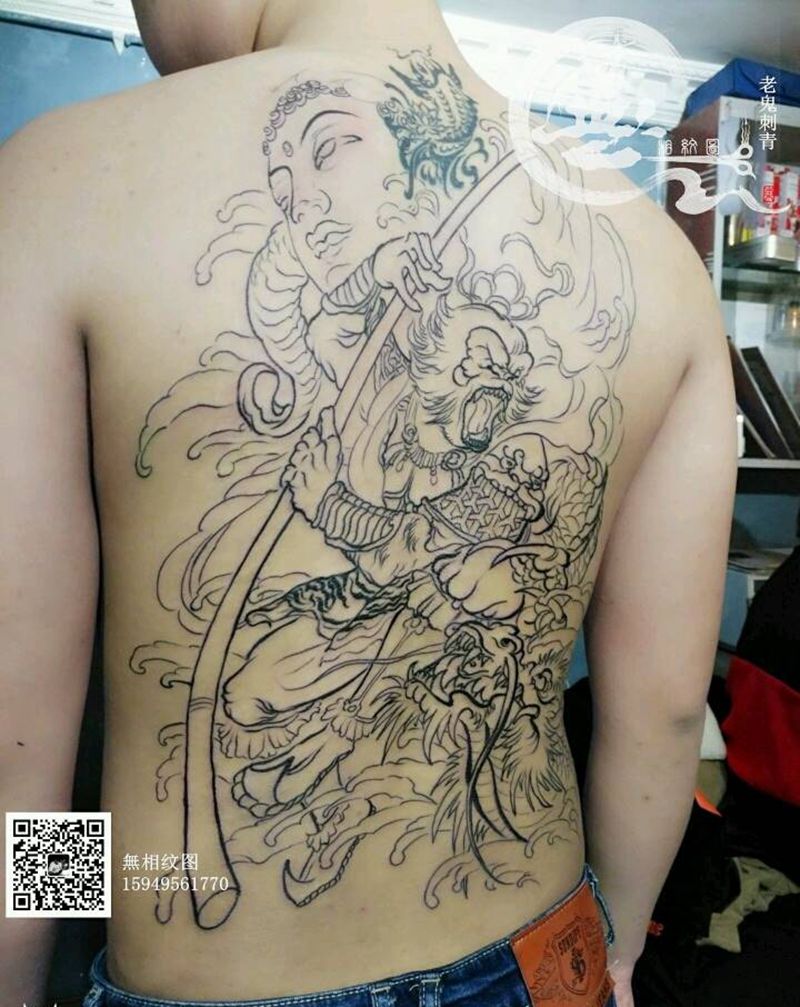 大圣线条纹身图片_背部传统半成品成品纹身图案