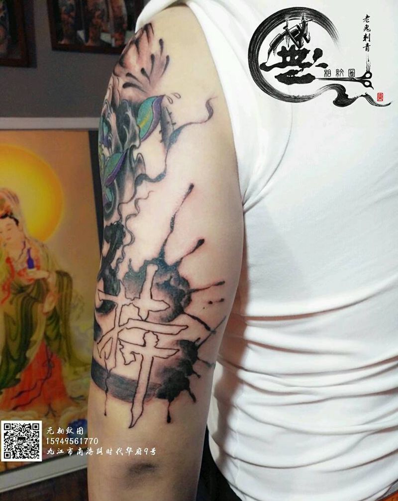 当前位置: 首页 >江西省九江市纹身店-無相纹图老鬼刺青纹身图案>修改添加作品纹身图片_手臂传统字符花卉成品纹身图案