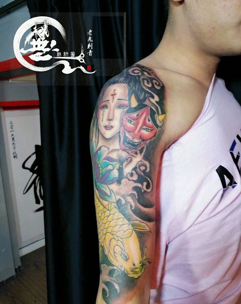 当前位置: 首页 >江西省九江市纹身店-無相纹图老鬼刺青纹身图案>艺妓荷花鲤鱼纹身图片_手臂传统成品纹身图案