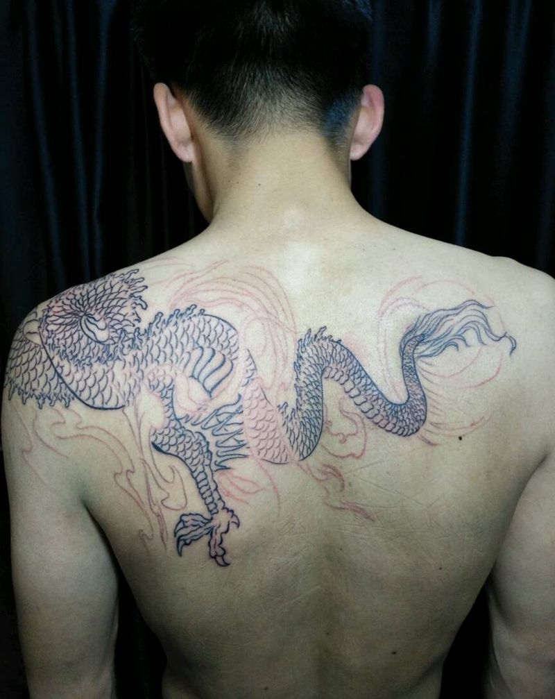 • T云龙九郎纹身图片_背部老传统云龙九郎纹身图案