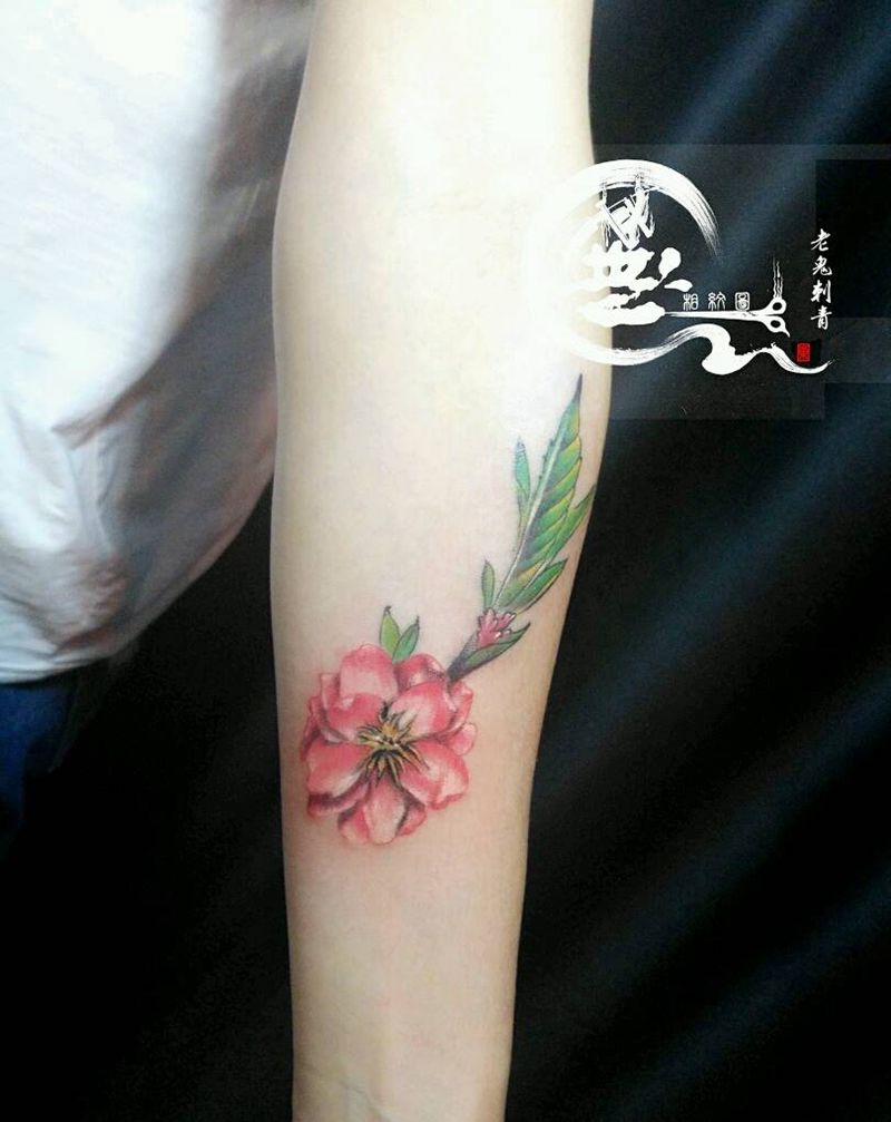 桃花纹身图片_手臂原创花卉成品纹身图案