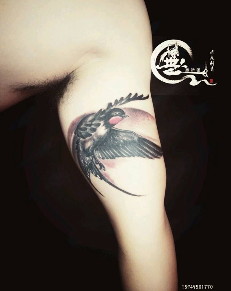 当前位置: 首页 >江西省九江市纹身店-無相纹图老鬼刺青纹身图案>燕子纹身图片_手臂传统成品纹身图案
