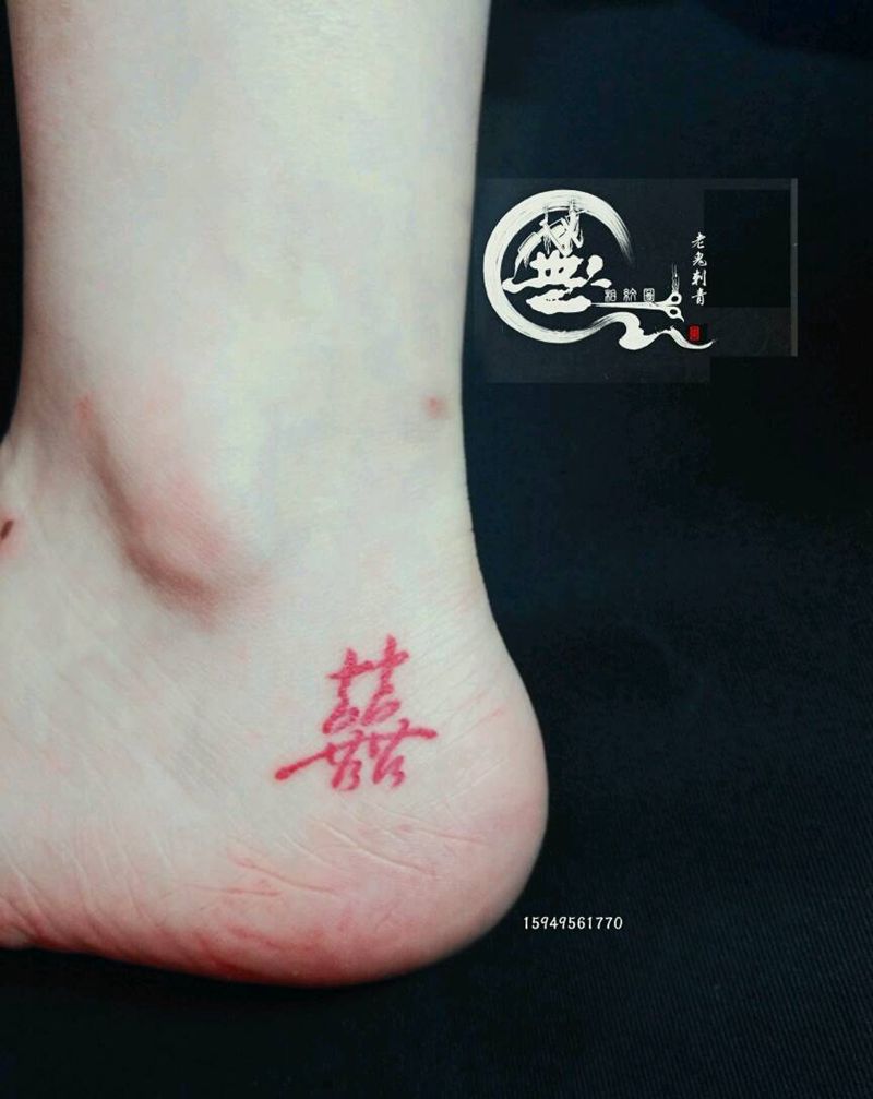 喜喜纹身图片_腿部传统字符成品纹身图案