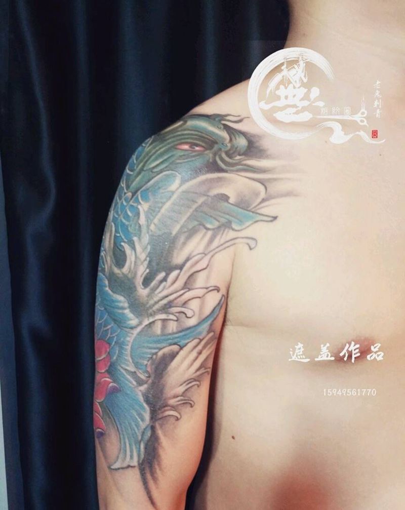 大鲤鱼遮盖纹身图片_手臂传统遮盖成品纹身图案