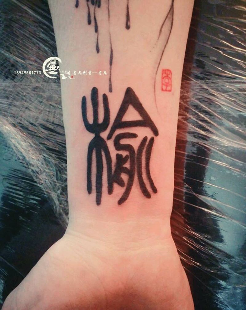 当前位置: 首页 >江西省九江市纹身店-無相纹图老鬼刺青纹身图案>字纹身图片_手臂传统原创成品纹身图案