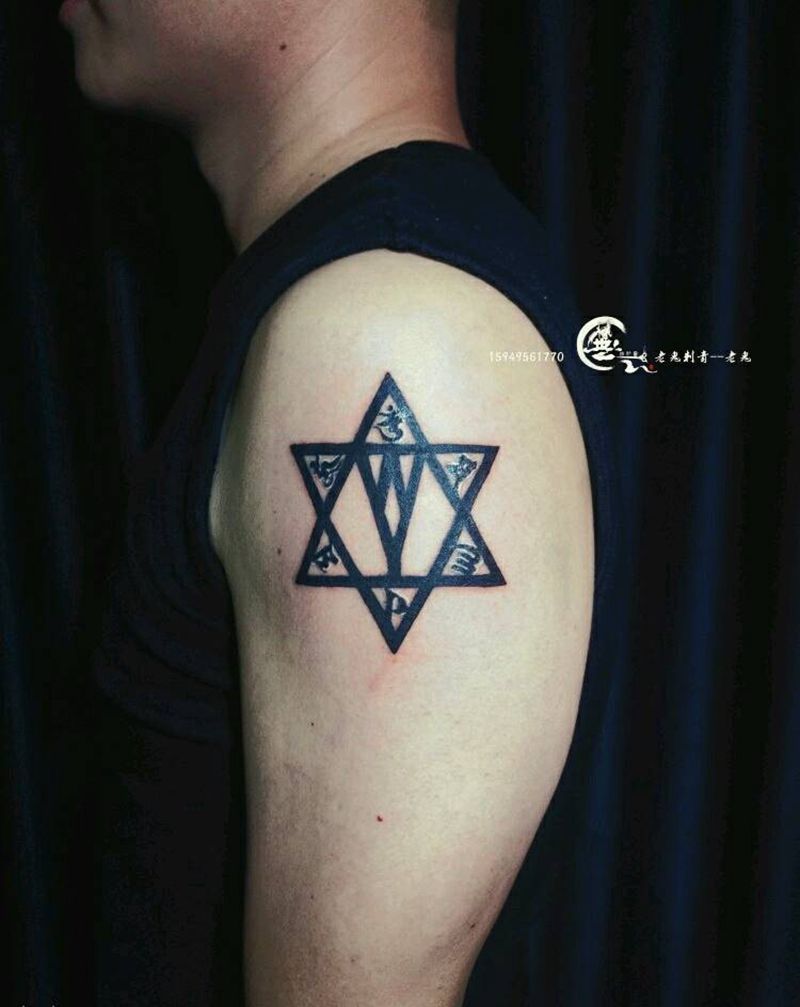 当前位置: 首页 >江西省九江市纹身店-無相纹图老鬼刺青纹身图案>六芒星纹身图片_手臂字符图腾原创手稿成品纹身图案