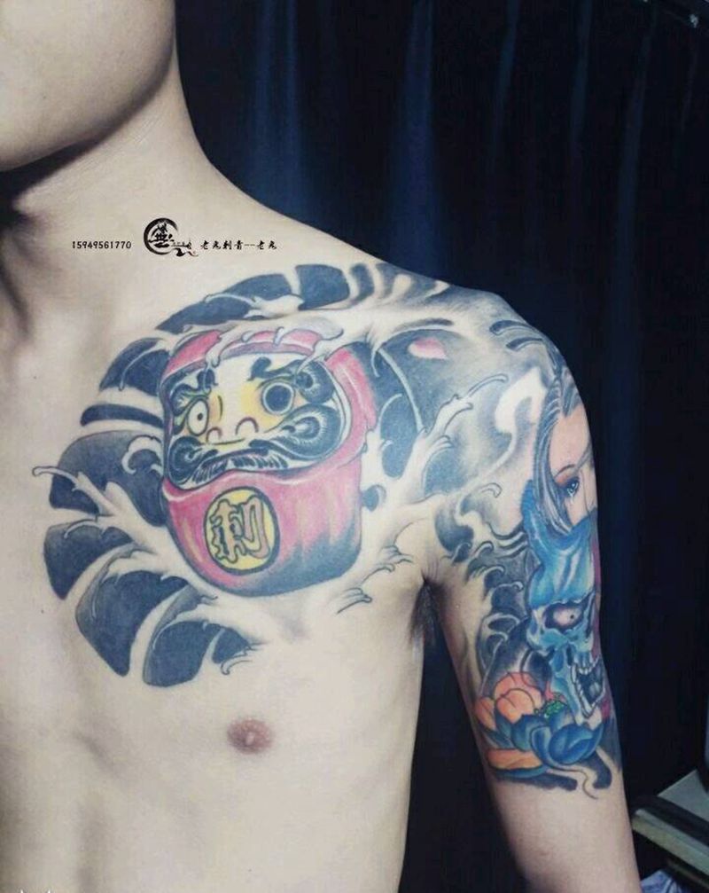 日式半甲纹身图片_胸部手臂传统成品纹身图案