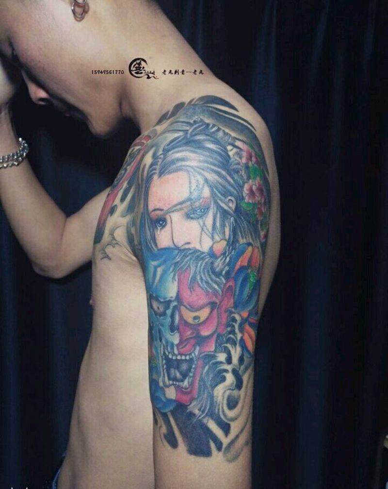 日式半甲纹身图片_胸部手臂传统成品纹身图案