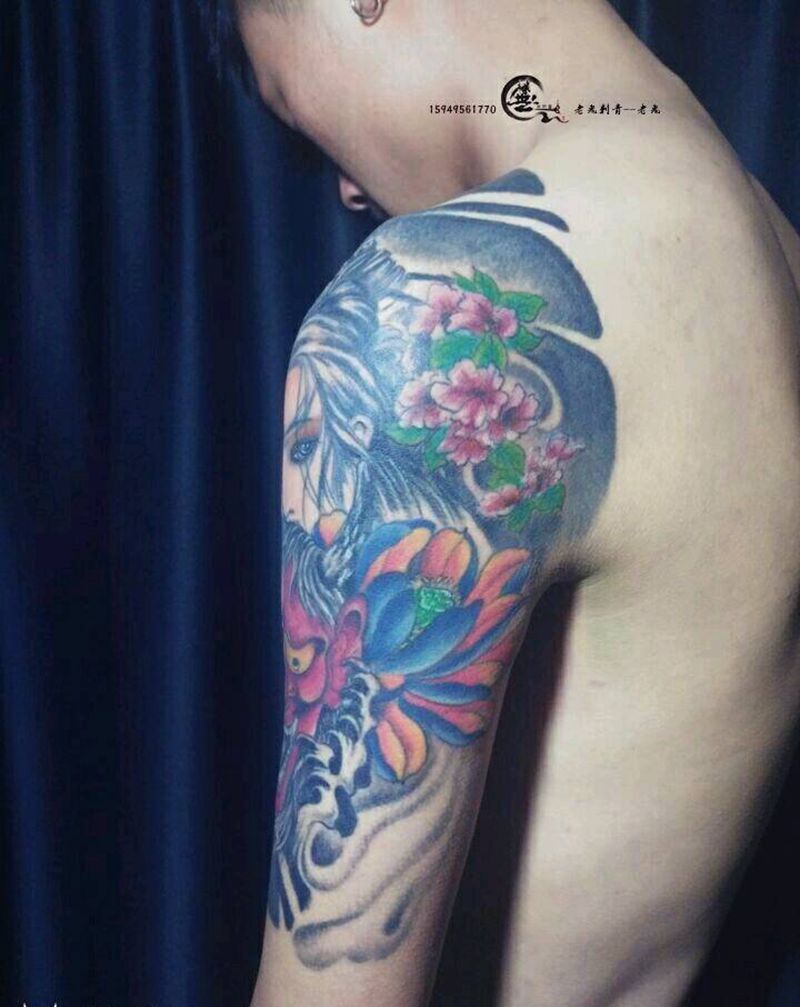 日式半甲纹身图片_胸部手臂传统成品纹身图案