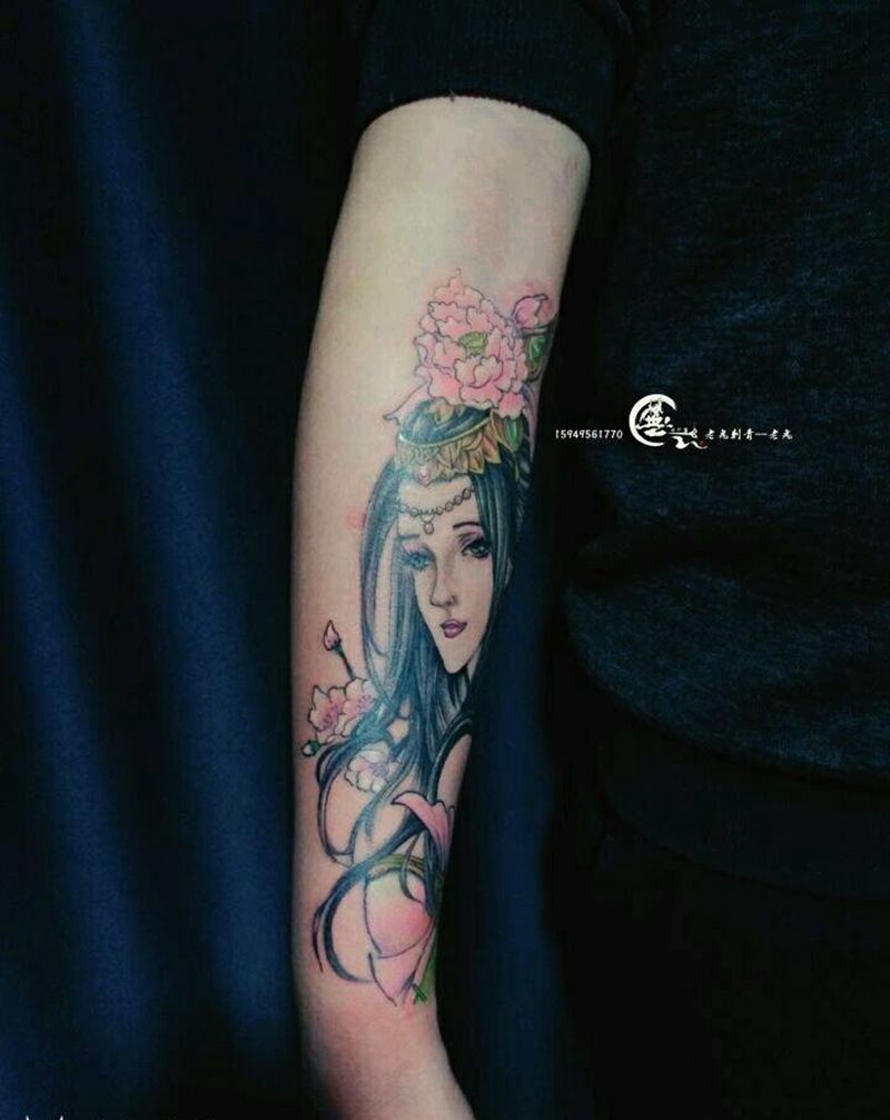 古风美女纹身图片_手臂传统人物成品纹身图案