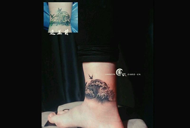 遮盖作品纹身图片_脚部原创遮盖成品纹身图案