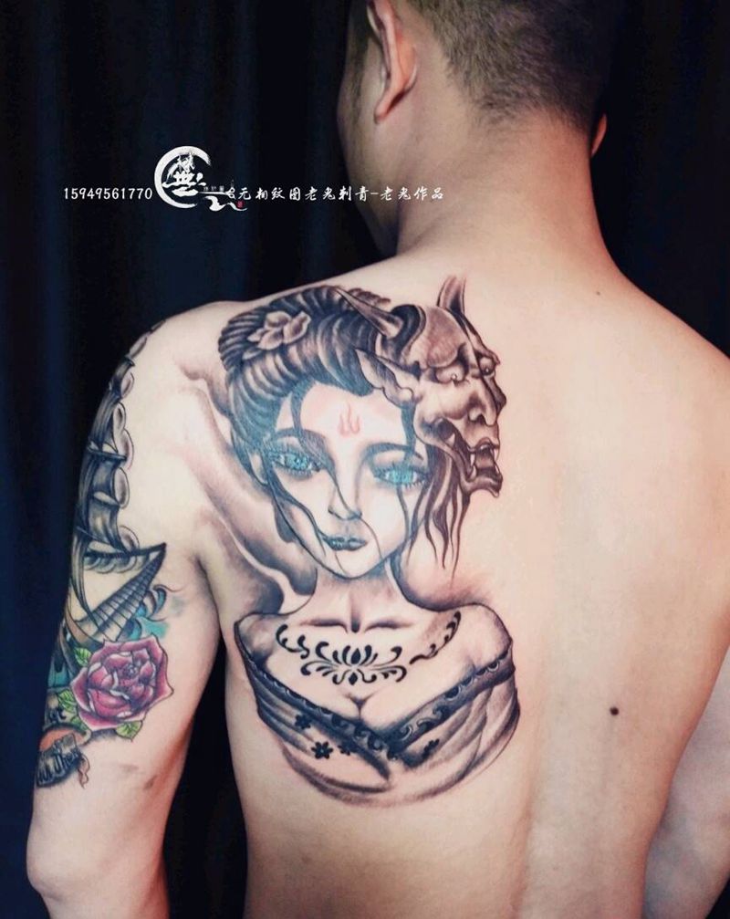 黑灰满背纹身图案