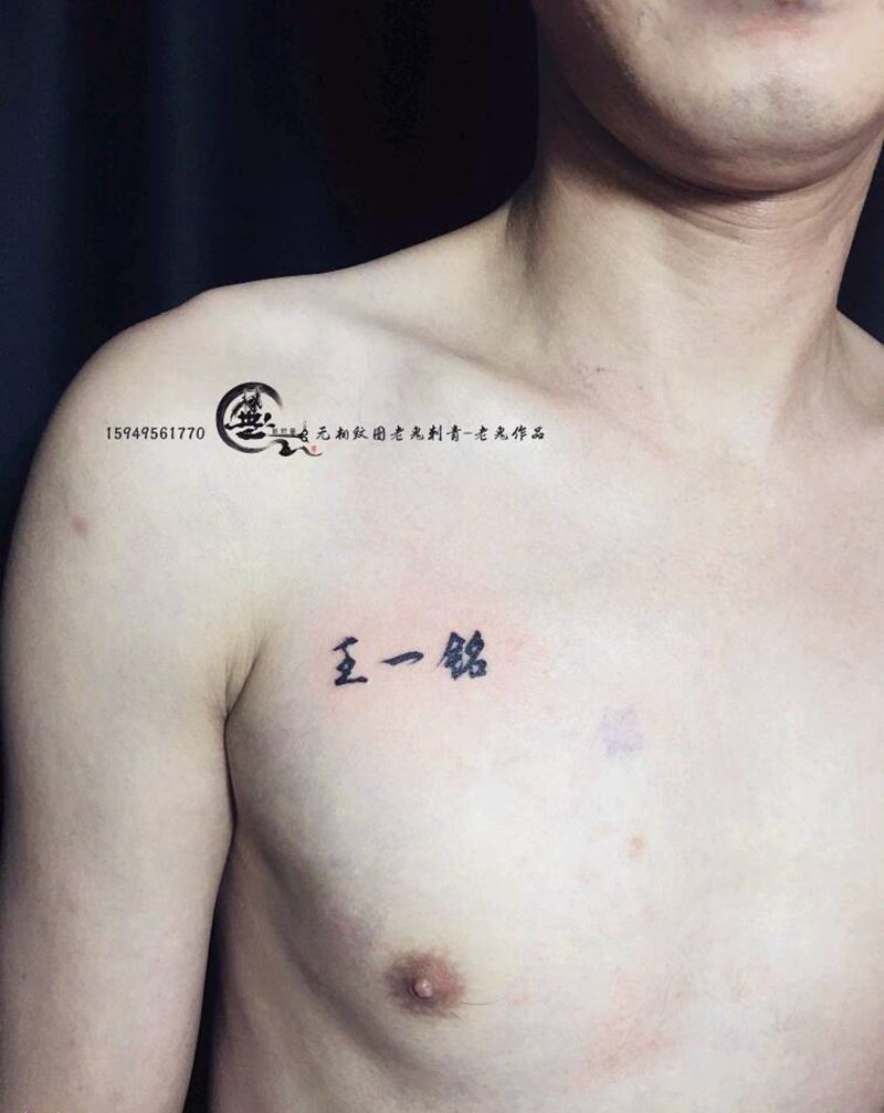 字母,汉字纹身图片_胸部字符成品纹身图案
