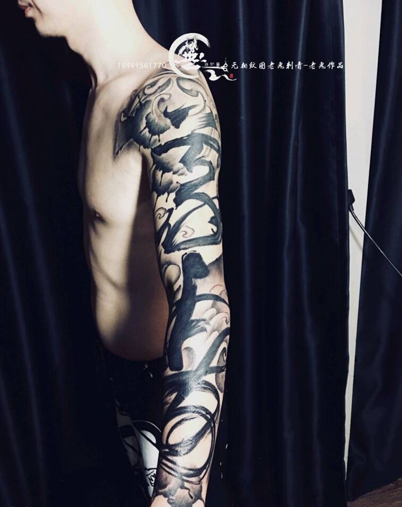 当前位置: 首页 >江西省九江市纹身店-無相纹图老鬼刺青纹身图案>书法纹身图片_手臂水墨书法纹身图案