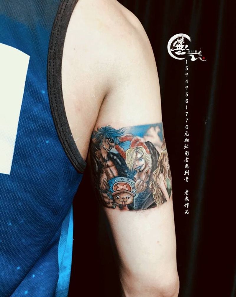 当前位置: 首页 >江西省九江市纹身店-無相纹图老鬼刺青纹身图案>海贼王臂环纹身图片_手臂水彩动漫纹身图案
