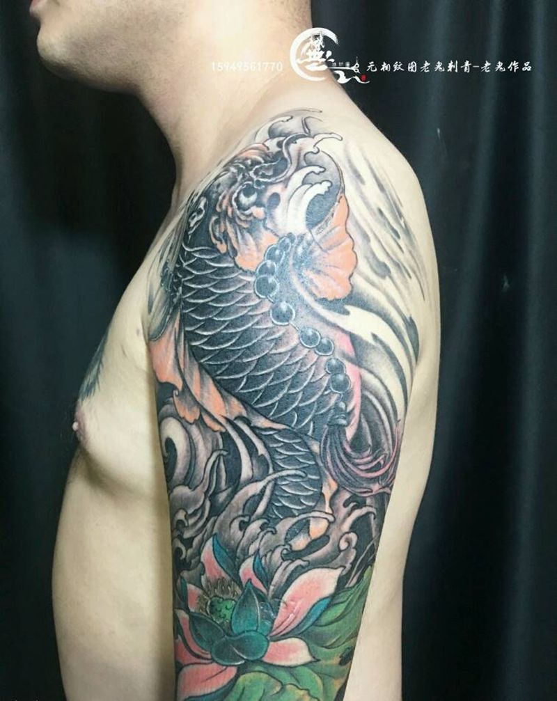 当前位置: 首页 >江西省九江市纹身店-無相纹图老鬼刺青纹身图案>鲤鱼纹身图片_手臂老传统纹身图案
