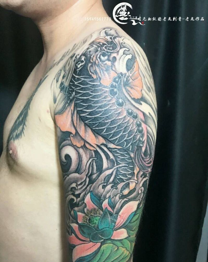 当前位置: 首页 >江西省九江市纹身店-無相纹图老鬼刺青纹身图案>鲤鱼纹身图片_手臂老传统纹身图案