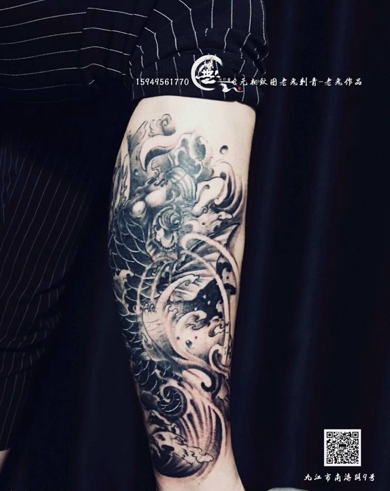 当前位置: 首页 >江西省九江市纹身店-無相纹图老鬼刺青纹身图案>小腿鲤鱼纹身图片_腿部新传统纹身图案