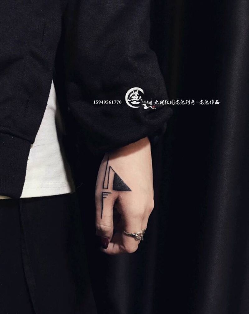 手背遮盖纹身图片_手部Old School图腾遮盖纹身图案