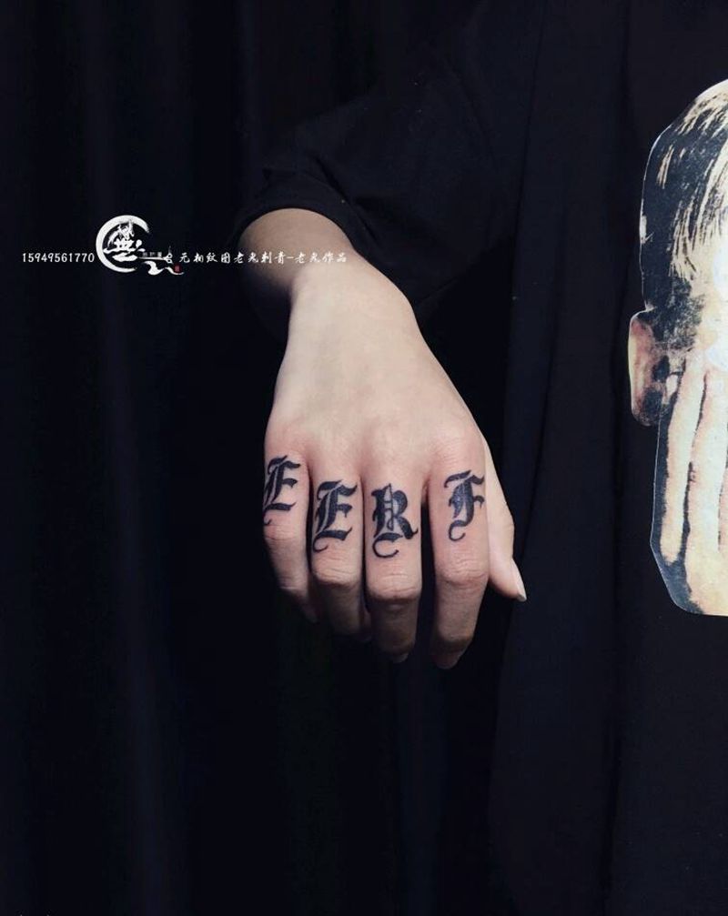 当前位置: 首页 >江西省九江市纹身店-無相纹图老鬼刺青纹身图案>手指纹身纹身图片_手部花体字几何纹身图案