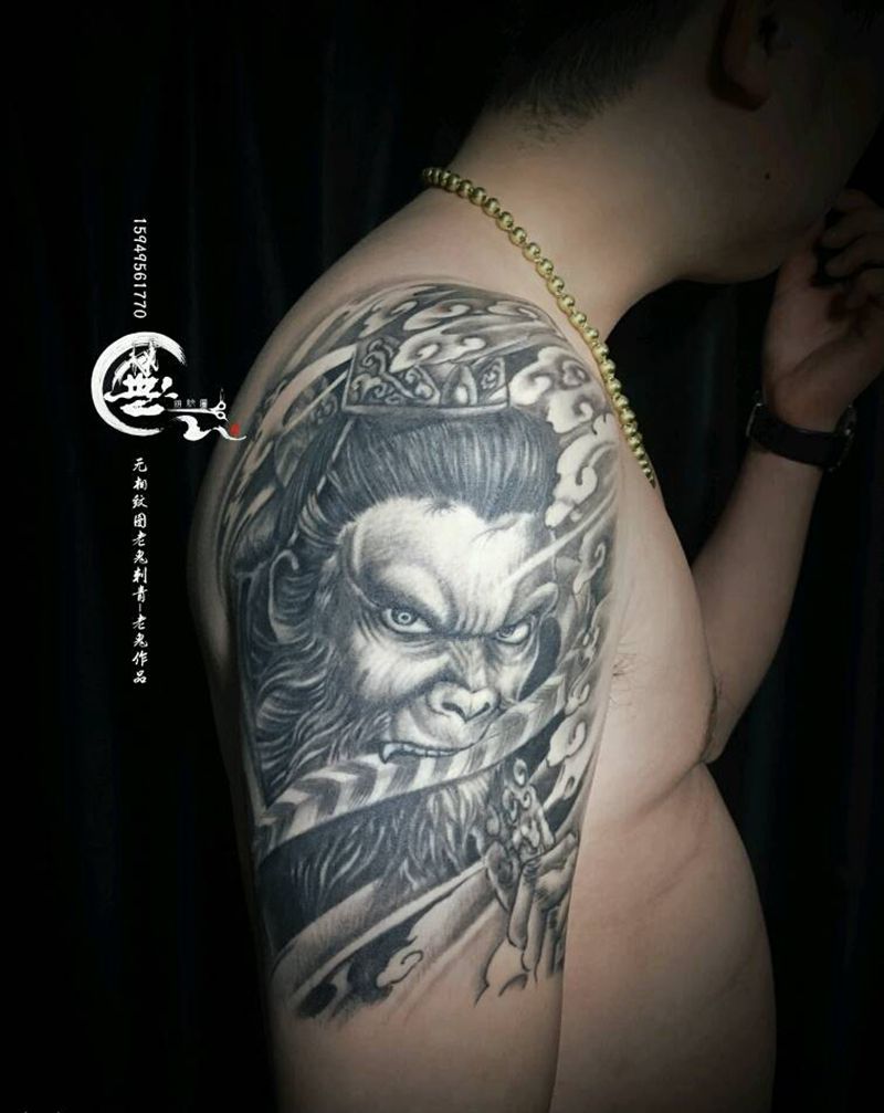 当前位置: 首页 >江西省九江市纹身店-無相纹图老鬼刺青纹身图案>大圣纹身图片_手臂新传统悟空纹身图案