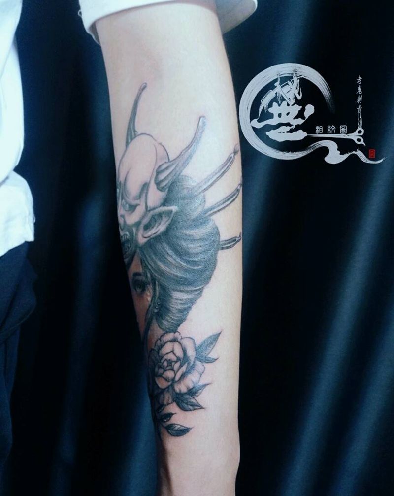 当前位置: 首页 >江西省九江市纹身店-無相纹图老鬼刺青纹身图案>艺妓纹身图片_手臂日式纹身图案