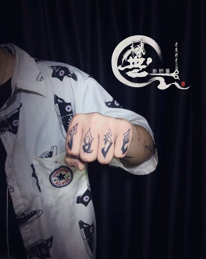 当前位置: 首页 >江西省九江市纹身店-無相纹图老鬼刺青纹身图案>手指纹身纹身图片_手部花体字纹身图案
