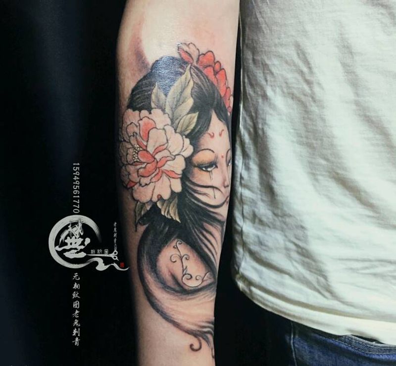 当前位置: 首页 >江西省九江市纹身店-無相纹图老鬼刺青纹身图案>艺妓纹身图片_手臂艺妓纹身图案