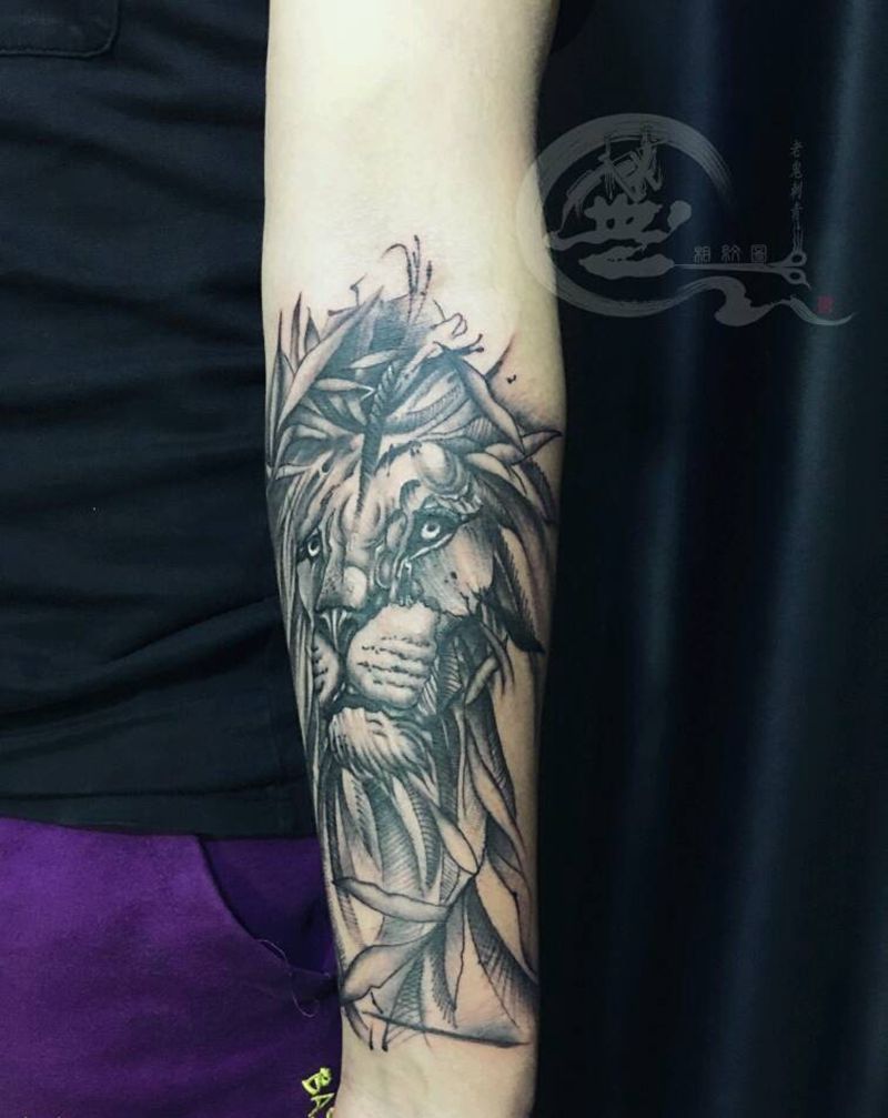 当前位置: 首页 >江西省九江市纹身店-無相纹图老鬼刺青纹身图案>抽象派狮子纹身图片_手臂抽象纹身图案
