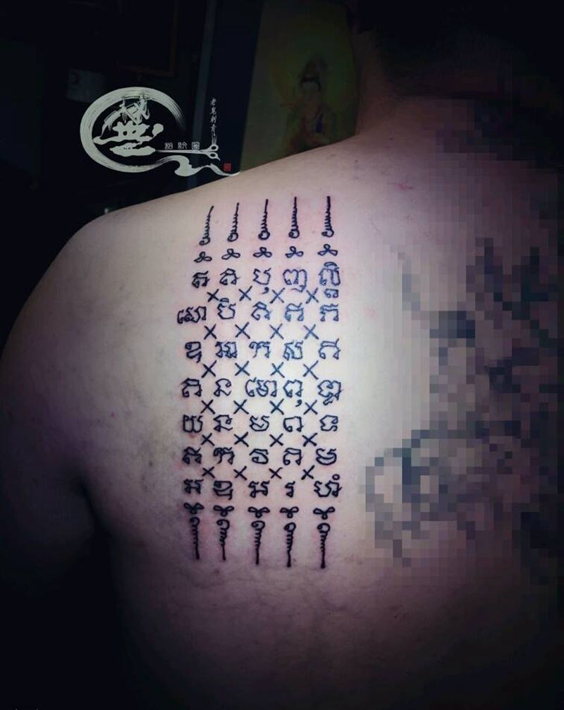 当前位置: 首页 >江西省九江市纹身店-無相纹图老鬼刺青纹身图案>泰国经文 多图纹身图片_背部颈部经文纹身图案