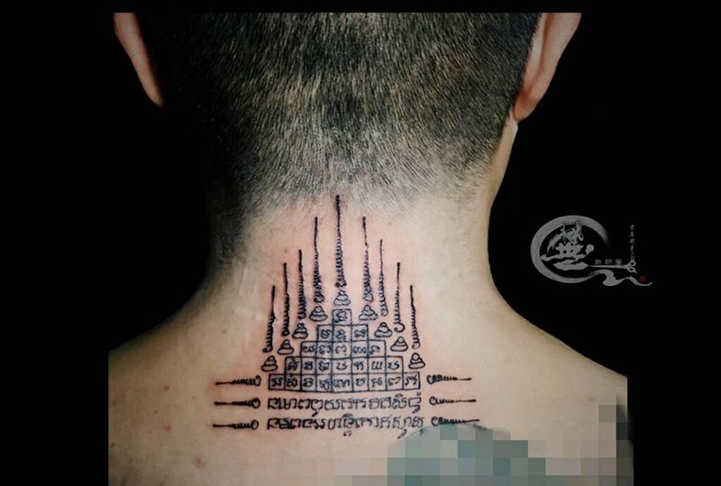 泰国经文 多图纹身图片_背部颈部经文纹身图案