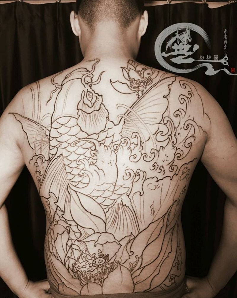 当前位置: 首页 >江西省九江市纹身店-無相纹图老鬼刺青纹身图案>满背鲤鱼纹身图片_背部新传统纹身图案