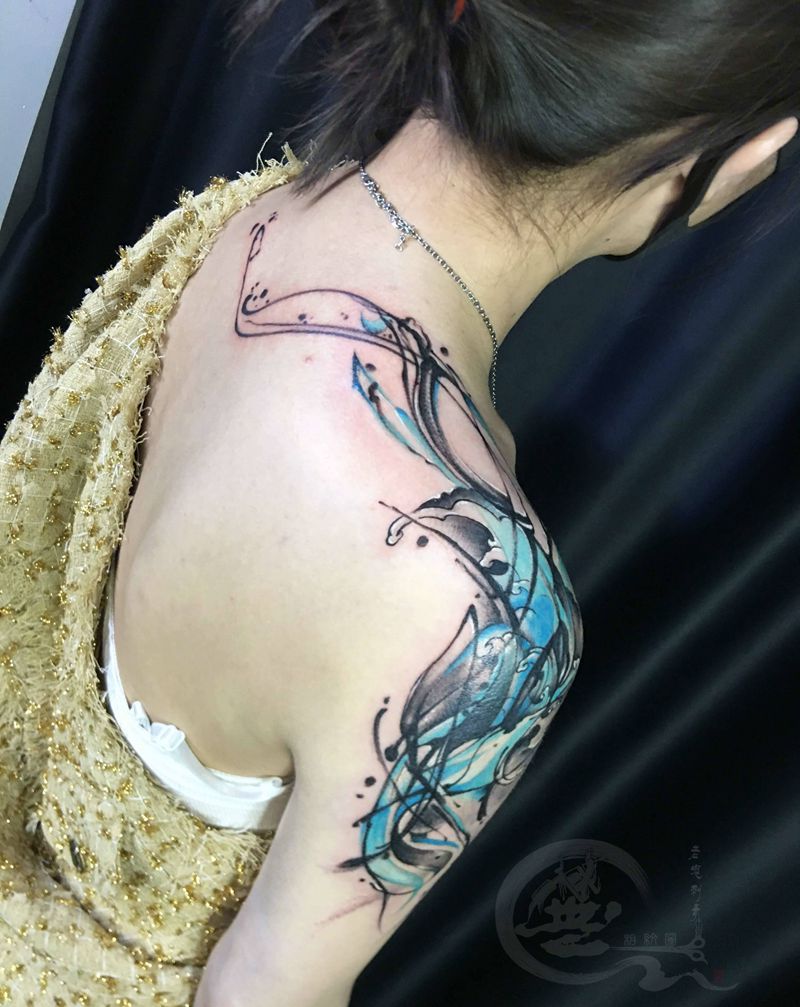 新中式纹身纹身图片_肩部新传统水墨纹身图案