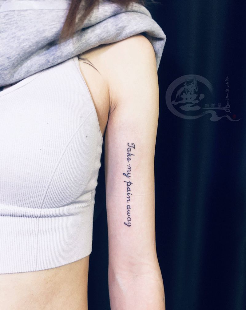 当前位置: 首页 >江西省九江市纹身店-無相纹图老鬼刺青纹身图案>多部位英文句子纹身图片_腹部手臂纹身图案