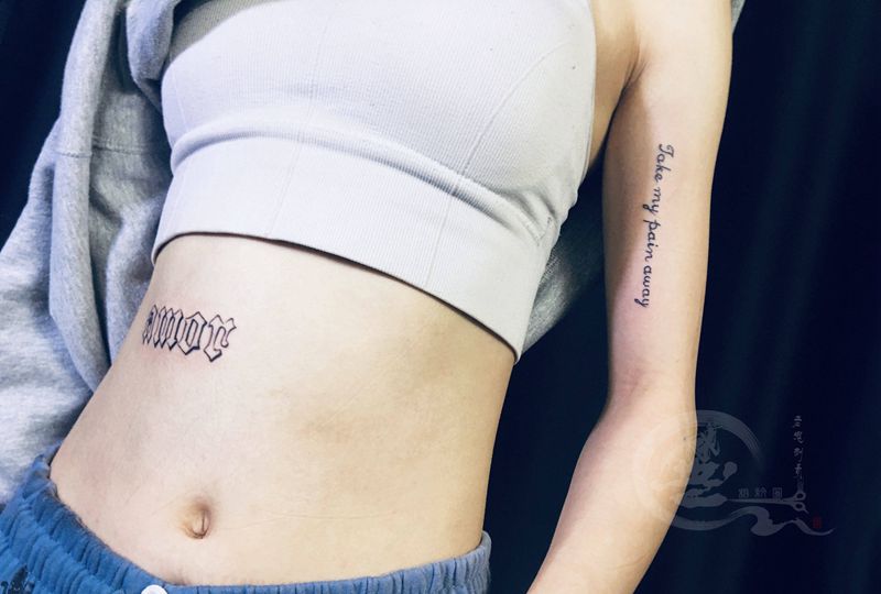 多部位英文句子纹身图片_腹部手臂纹身图案
