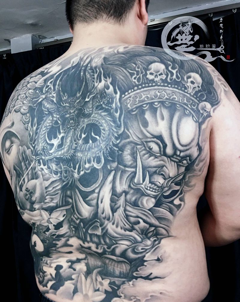 当前位置: 首页 >江西省九江市纹身店-無相纹图老鬼刺青纹身图案>满背添加修改纹身图片_背部纹身图案