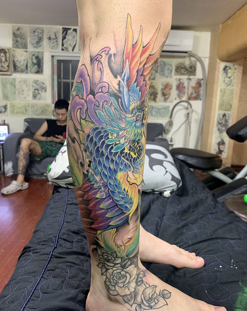 当前位置: 首页 >江西省赣州市纹身店-狼族纹身工作室纹身图案>凤凰盖艺技纹身图片_腿部纹身图案