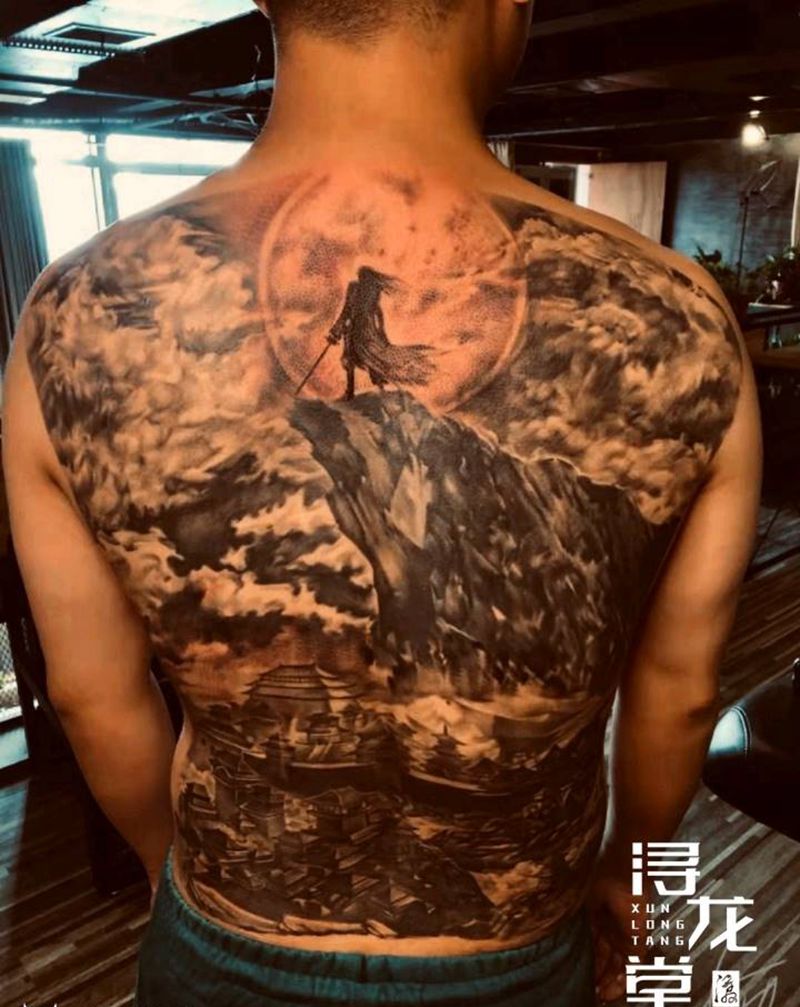 【仗剑天涯】纹身图片_背部欧美写实纹身图案
