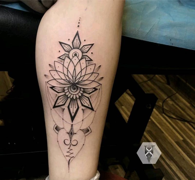 当前位置: 首页 >江西省九江市纹身店-浔龙堂纹身店纹身图案>梵纹身图片_腿部点刺纹身图案