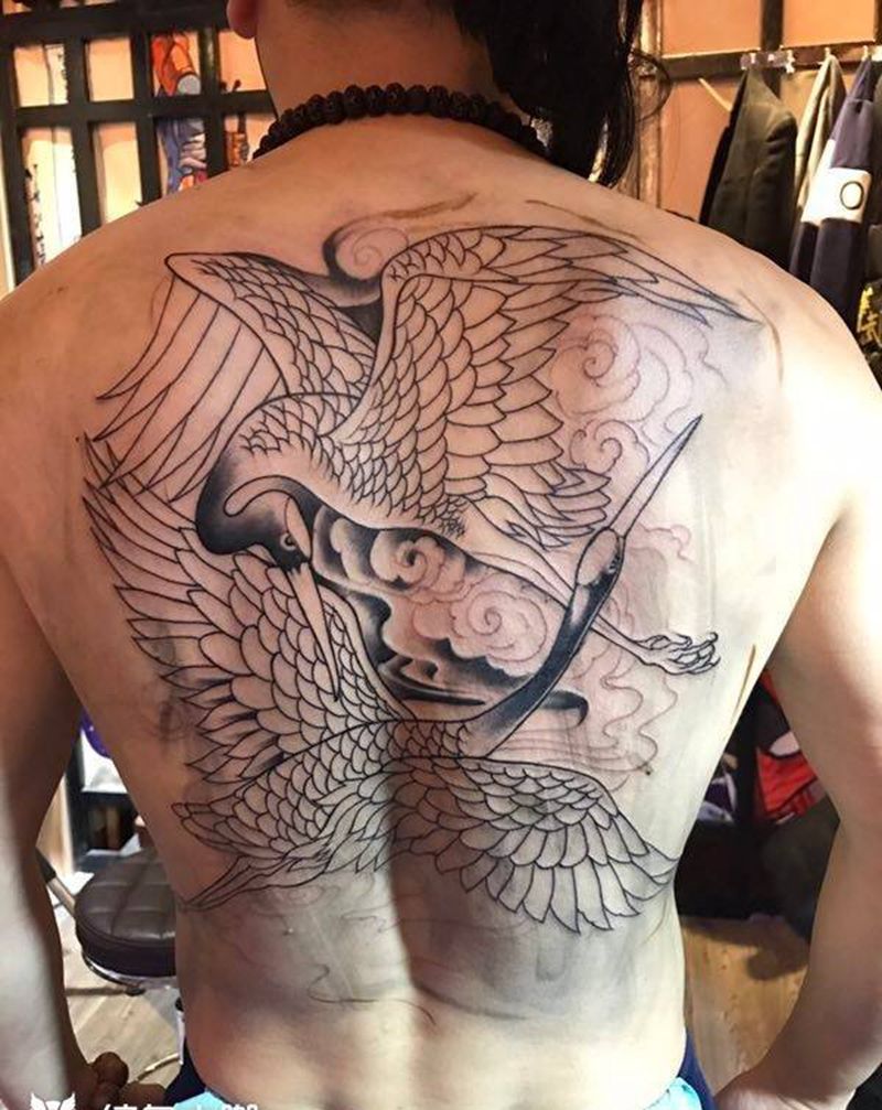 仙鹤纹身图片_肩部背部腹部成品原创动物传统纹身图案
