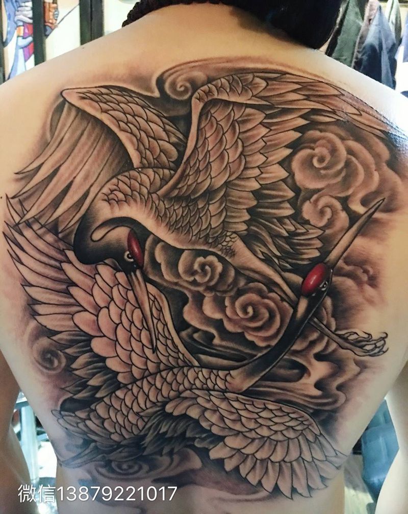 仙鹤纹身图片_肩部背部腹部成品原创动物传统纹身图案